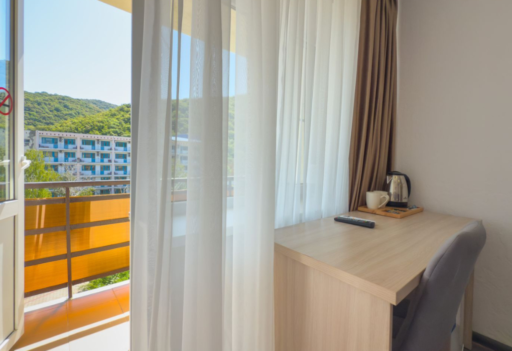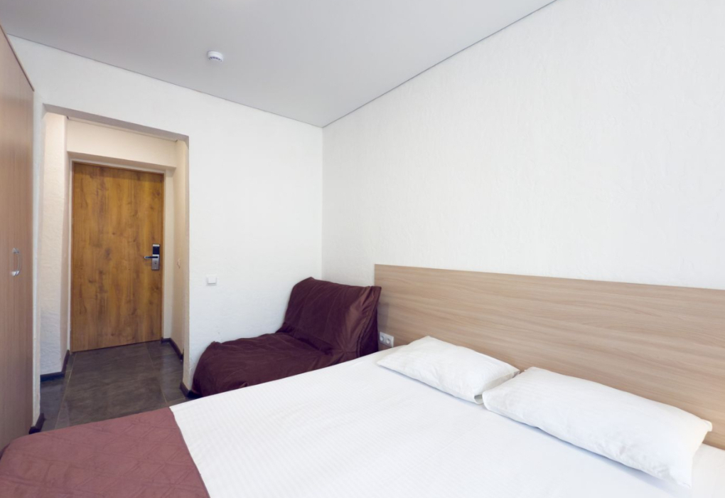 Площадь номера - 12-16 кв.м. 1 комната. 2 осн. места. В номере: телевизор; холодильник; балкон; кондиционер; душ; фен; 1-спальные/ 2-спальная кровать; санузел; чайная станция. 1 доп. место: Еврораскладушка/кресло-кровать - предоставляется без ограничений по возрасту.